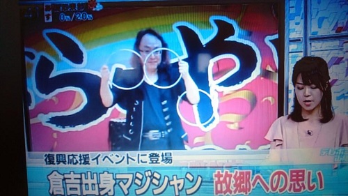 鳥の杜で行ったクロースアップマジックショー、倉吉未来中心の『がんばらいや中部』で行ったステージマジックの映像に加え、インタビューを交えた5分ほどのドキュメンタリー風特集でした。